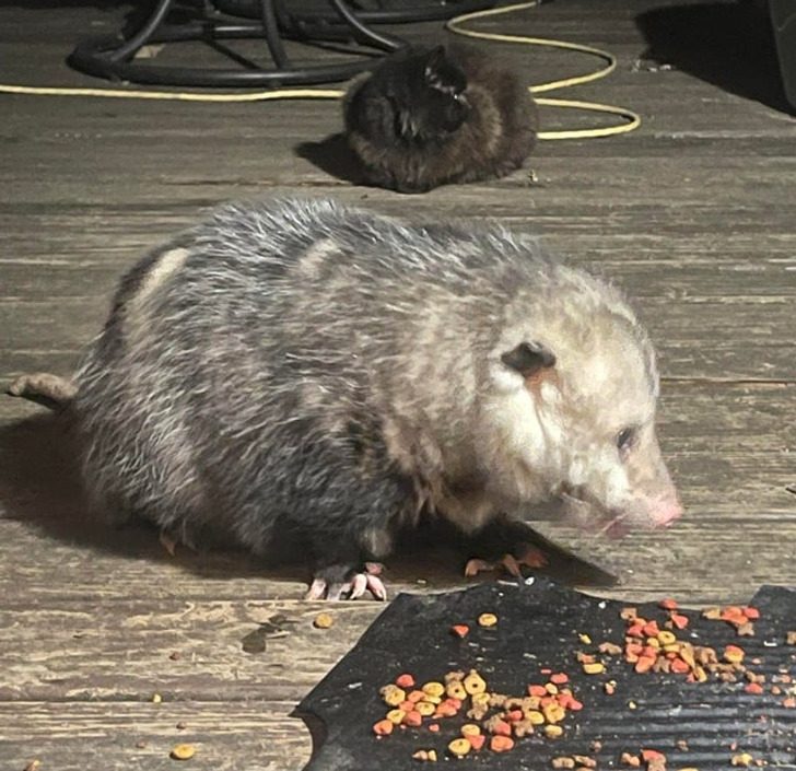 «Каждую ночь ко мне на крыльцо заявляется этот крепыш, чтобы доесть корм после кошек. А они, кажется, и не против»
