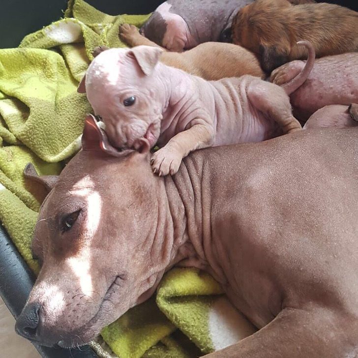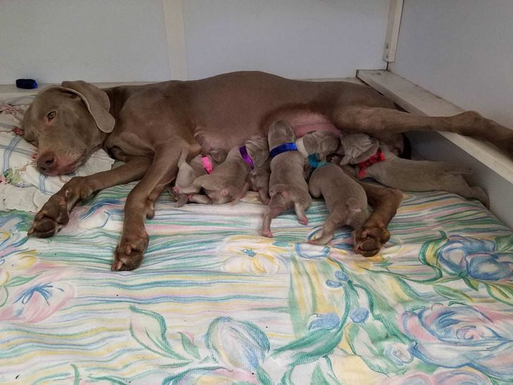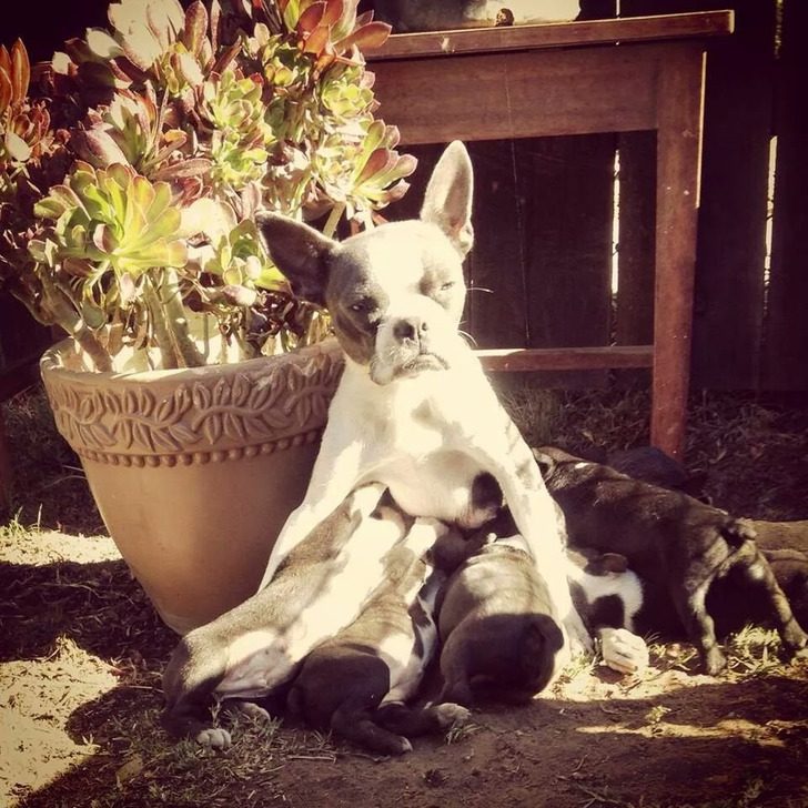 «У одной из собак моей мамы только что родились щенята. Она, кажется, не в восторге от происходящего»