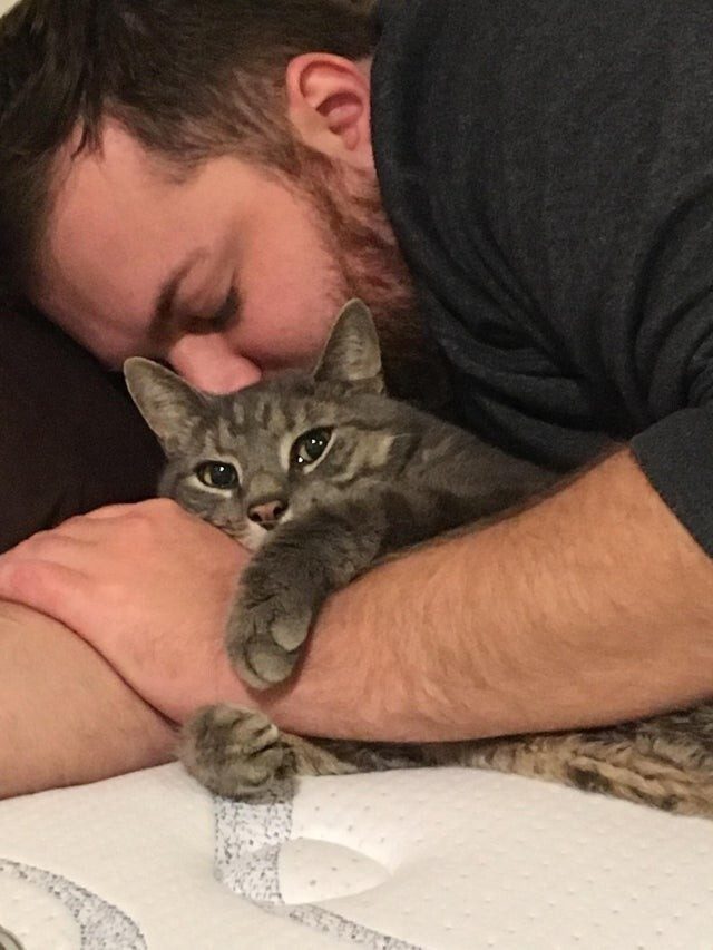 Моего брата не было месяц, и кошка очень по нему скучала