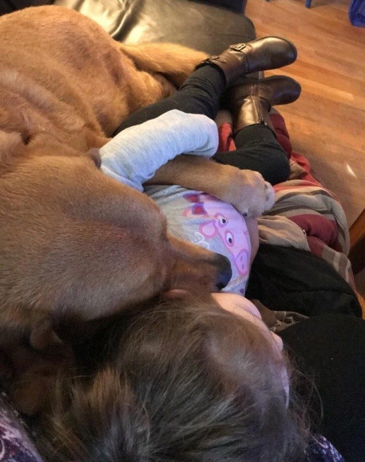 Каждый раз, когда моя дочка грустит или капризничает, пёс приходит, чтобы её развеселить