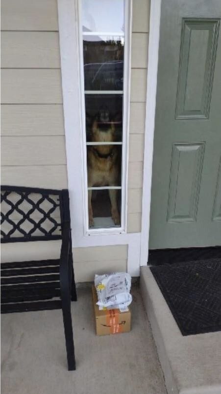 Охраняет посылку прямо через окно!