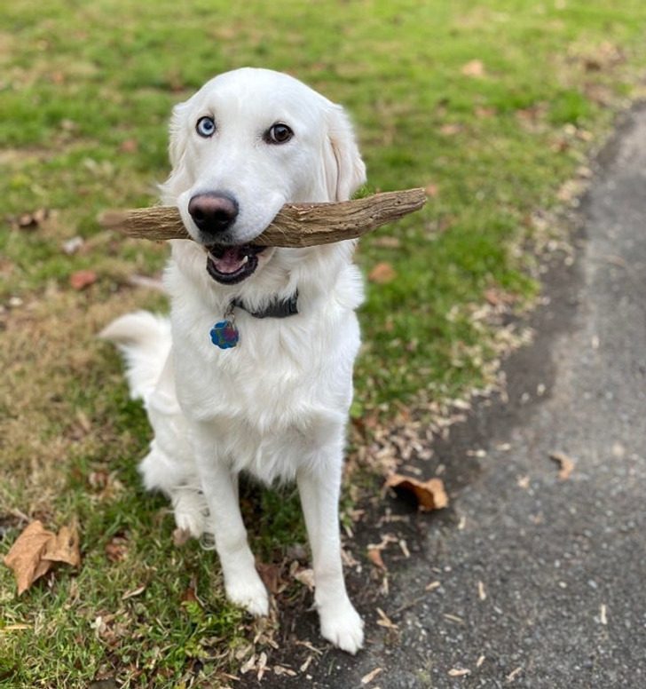 У этого пса настолько разные глаза, что кажется, будто он постоянно подмигивает
