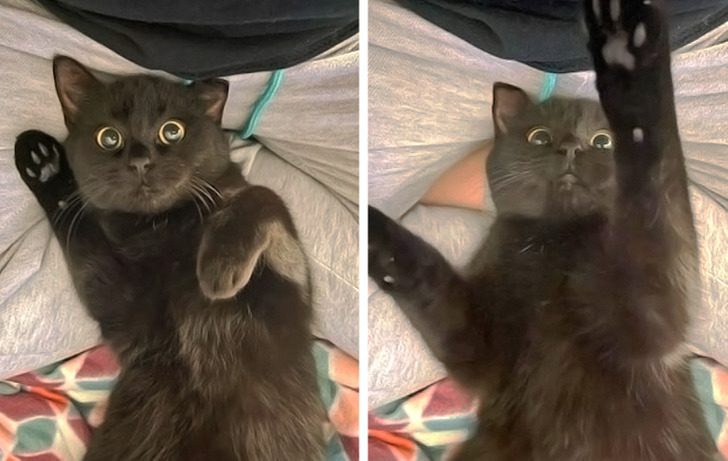 «Наш новый 4-недельный котенок принял свою любимую позу для борьбы»