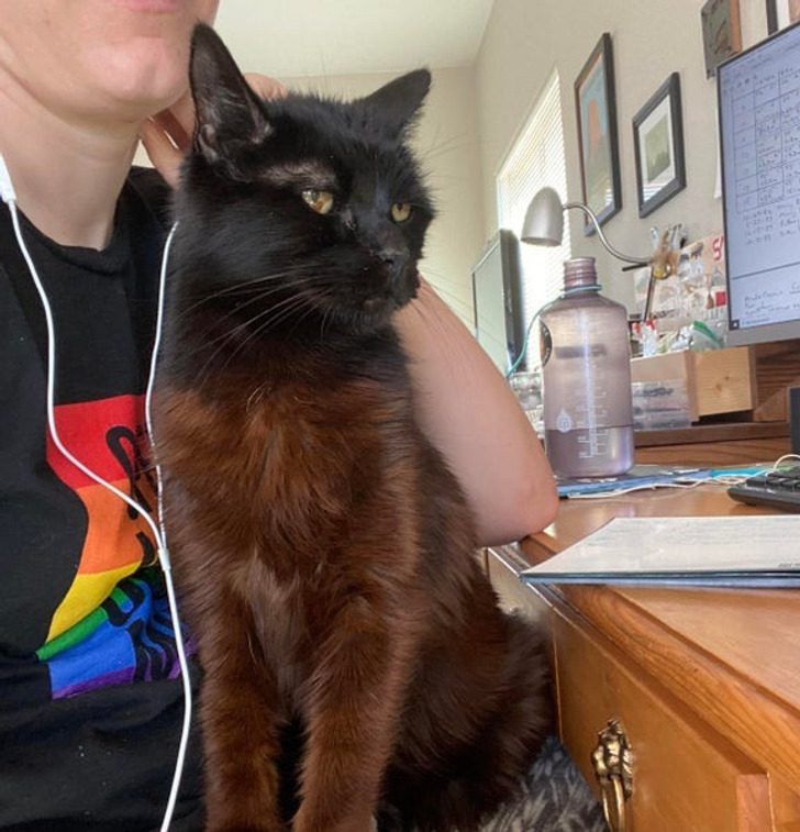 «Мой черный как смоль кот с возрастом стал превращаться в бурого медведя. Сейчас ему 18, и вот как он выглядит»