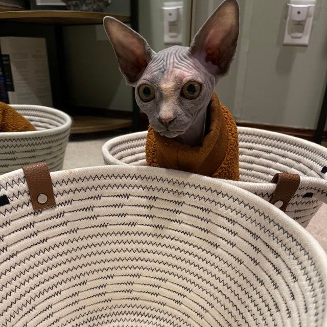 5. Она обожает сидеть в этих корзинках. Интересно, о чем она задумалась?