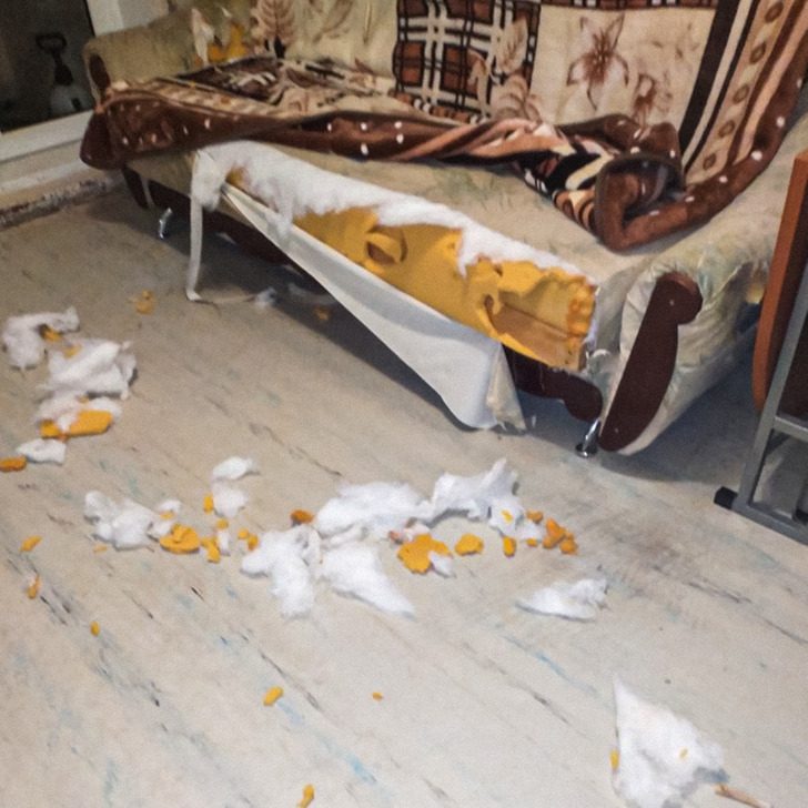 «Пострадали входная дверь (пришлось сменить), несколько пар моих туфель, 2 одеяла, несколько перчаток и головных уборов. И еще пришлось выбросить ковер».