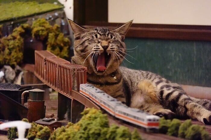 Наоки Тераока, любитель моделей железных дорог и владелец ресторана Diorama в Осаке, Япония, поделился своей милой историей — о том, как кошки спасли его ресторан во времена кризиса.