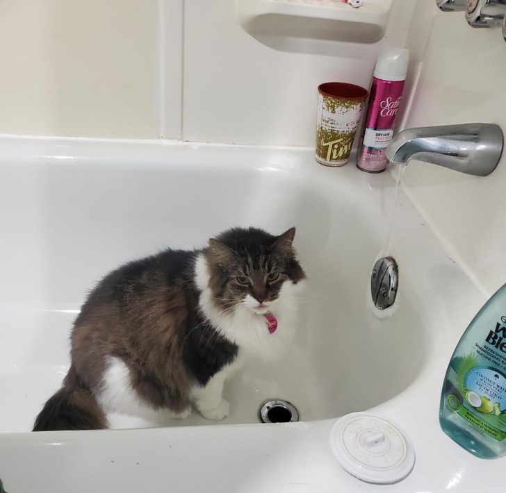 «Каждый раз после того, как я приму душ, она заходит в кабину и садится на мокрую поверхность, чтобы намочить лапы и хвост»