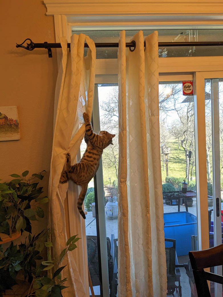19. Ему понравились новые шторы. По ним прекрасно забираться на карниз.