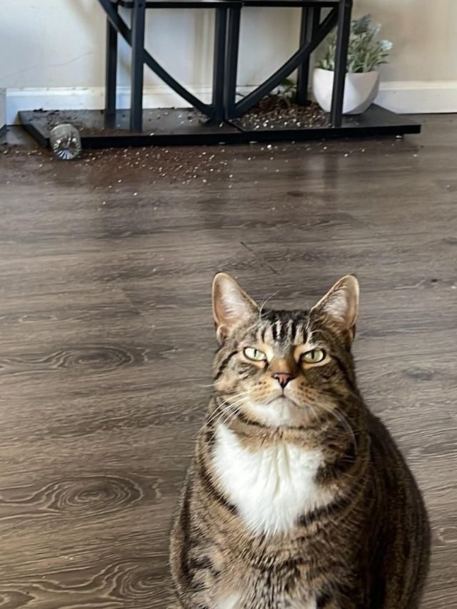 6. “Моя кошка Памела опрокинула два вазона за то, что я поздно пришла с работы и не покормила её вовремя”