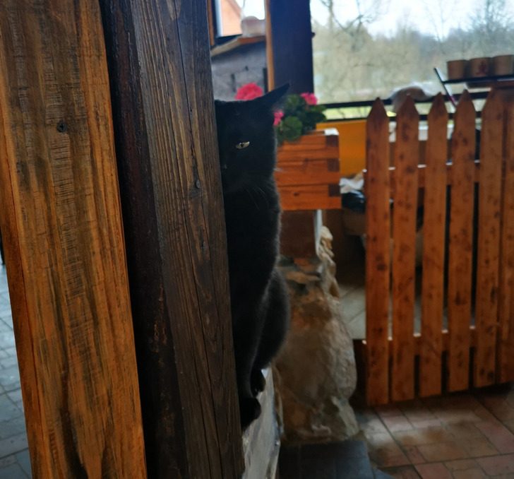 «Этот загадочный кот наблюдал за нами во время обеда в кафе»