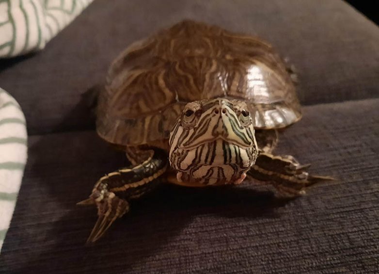 “Моя черепаха отправилась на ежедневную прогулку по квартире”