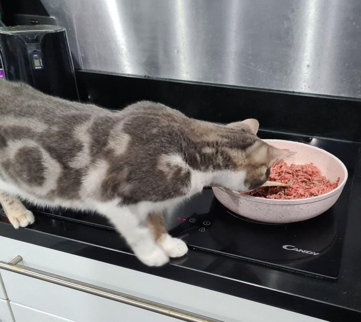 «Это происходит каждый раз, стоит мне только повернуться спиной к тому, что готовлю. Кот уже наверняка думает, что его зовут А Ну, Слезай»