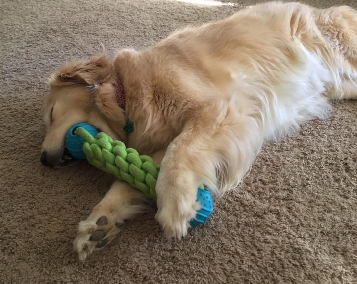 «Это Марли. Чтобы уснуть, он должен обязательно держать в пасти свою игрушку»