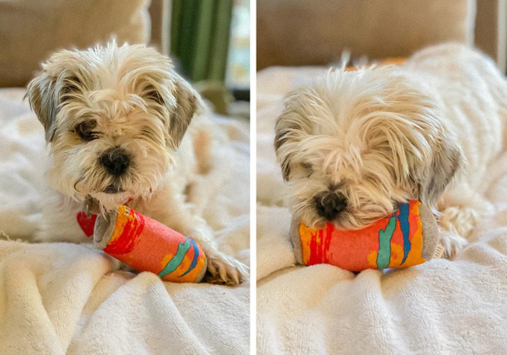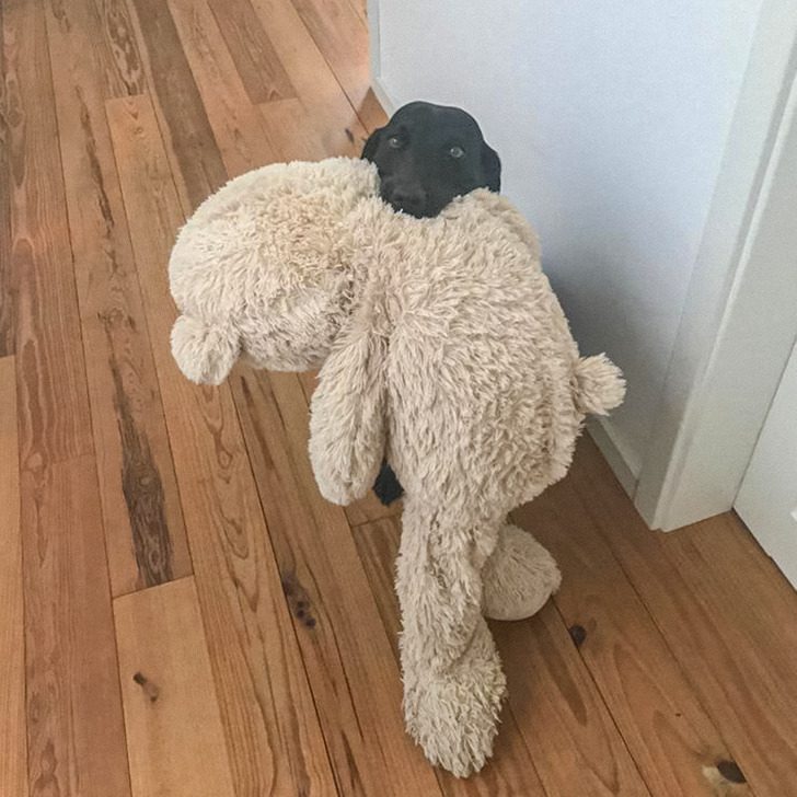 «Мне подарили мягкую игрушку на день рождения, и мой пес все время пытался ее украсть. Тогда я подарил ему его собственную игрушку. Он носит ее с собой абсолютно везде»