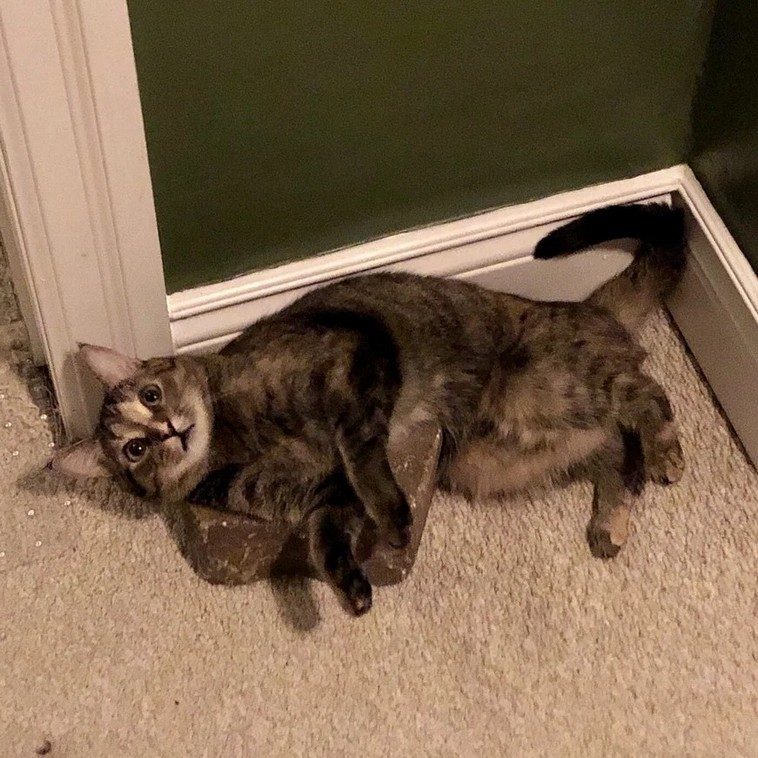 18. “Это фото прислала мне сестра. Пока я ночевал у друзей, наш кот спал у моей двери.”