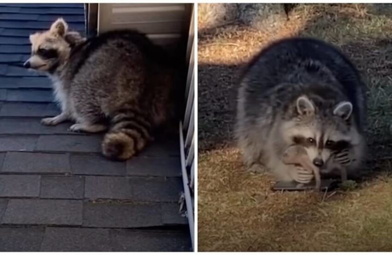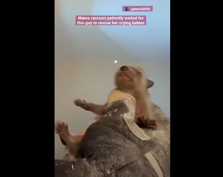 Мама-енот не слезла с крыши, пока люди не спасли всех детенышей