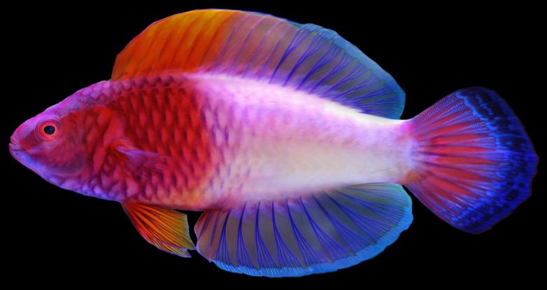 Названная сказочным губаном под розовой вуалью (или Cirrhilabrus finifenmaa), рыба представляет собой небольшое существо с ярко-розовой головой и чешуёй жёлтых и синих оттенков.