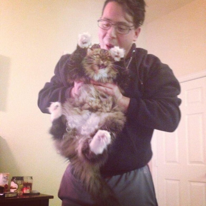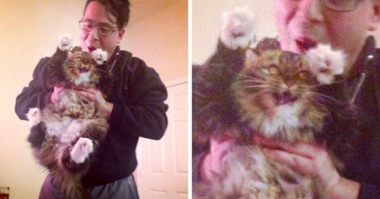 14. Мне удалось запечатлеть реакцию моей кошки, когда мой парень впервые попытался взять её на руки