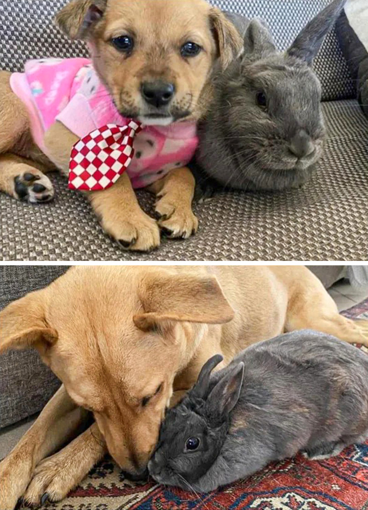 «Моя собака и кролик моей девушки выросли вместе и до сих пор лучшие друзья»