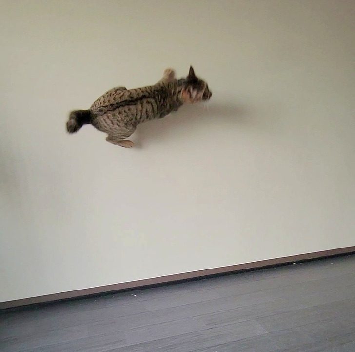 Полюбуйтесь на кота-паука, «карабкающегося» по стене