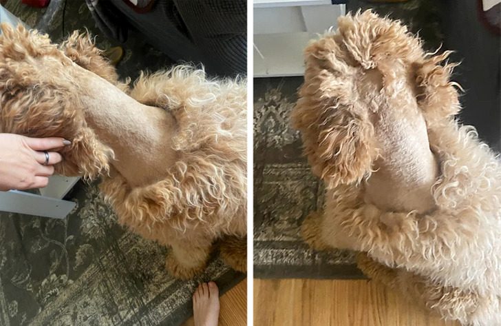 «Отвела к грумеру двух собак. Одну постригли, вторую начали стричь, но времени на нее не хватило. И вот так они отправили мою бедную малышку домой»
