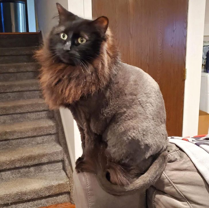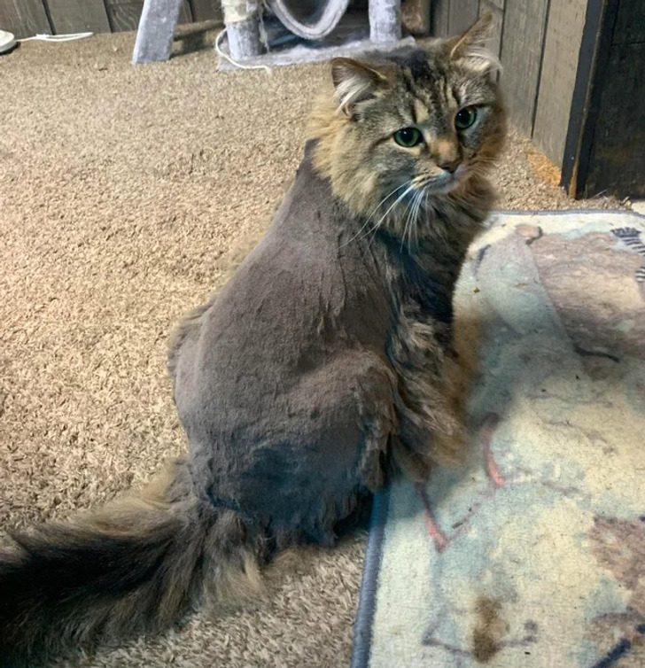 «Пришлось побрить кошку. Она не в восторге от того, что ее сфотографировали»