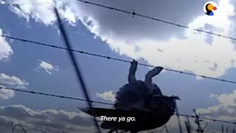 Впервые колючую проволоку придумали в США в 1899 году, применив ее в штате Айдахо для дополнительной охраны границ. С тех пор многие люди используют это простое и доступное средство для ограждения. Но мало кто задумывается, сколько животных страдает от колючей проволоки. Примером стала большая рогатая сова, чье крыло запуталось в цепком ограждении.