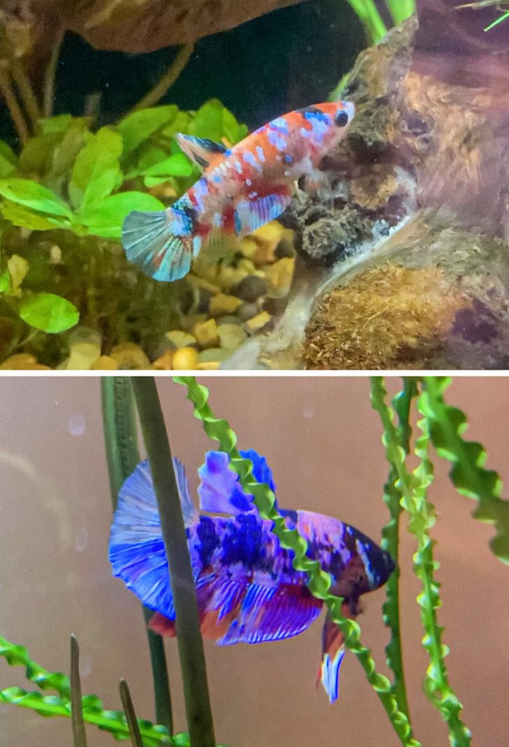 «Только взгляните на трансформацию моей рыбки-петушка. Их окрас во многом зависит от питания, уровня стресса и качества воды»