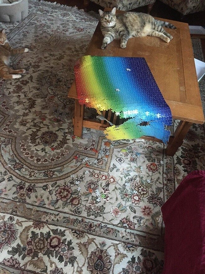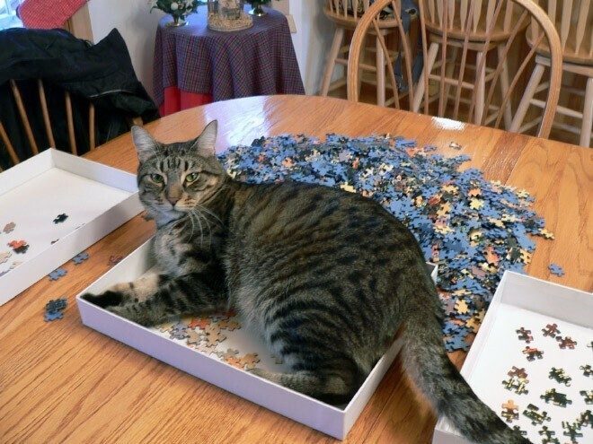 Эти фото прекрасно иллюстрируют, почему владельцы кошек должны отказаться от удовольствия собирать пазлы, кроме как за закрытыми дверями.