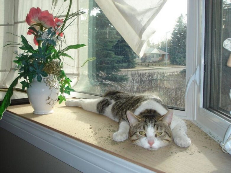 Просто мой кот наслаждается солнышком после того, как нанюхался кошачьей мяты