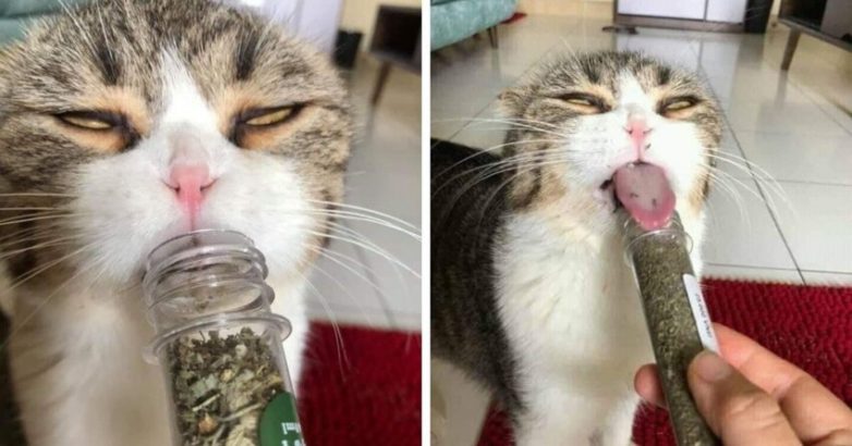 Котики, которых угостили кошачьей мятой