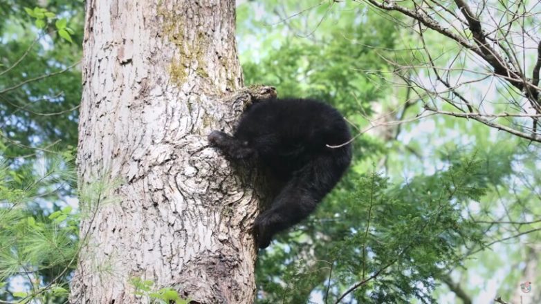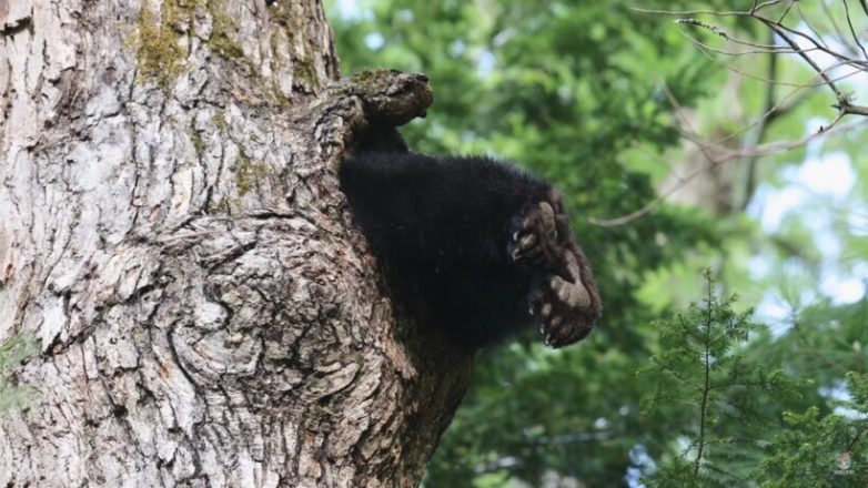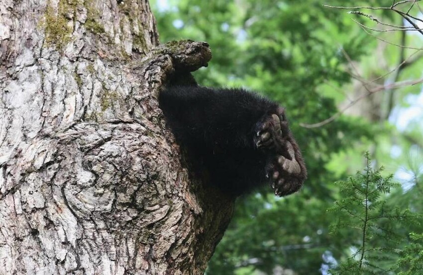 Мужчина заметил две черные лапы, торчащие из дупла дерева, и решил подойти поближе, чтобы снять происходящее на видео.