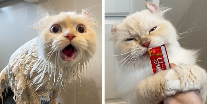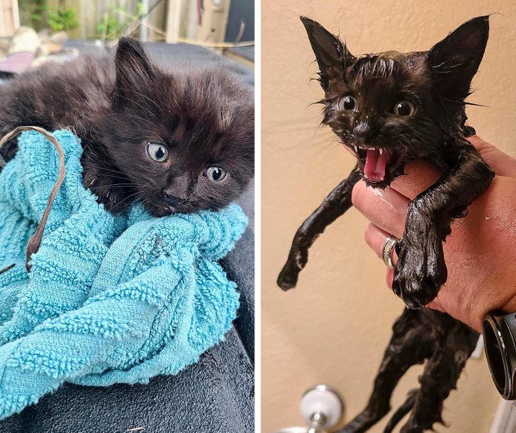 «Дети моего друга принесли домой котенка. Вот он до купания и вот после»