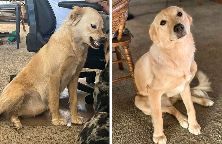«Моя собака по кличке Картоха в момент, когда она похожа на бешеного волка, и ее нормальное „я“»