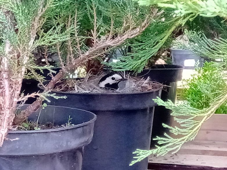 “Я работаю в строительном гипермаркете и у нас в отделе с растениями в одном из горшков с можжевельником свила гнездо трясогузка. Всем коллективом мы решили оставить её в покое, пока не вылупятся птенцы и пока она их не выходит.”