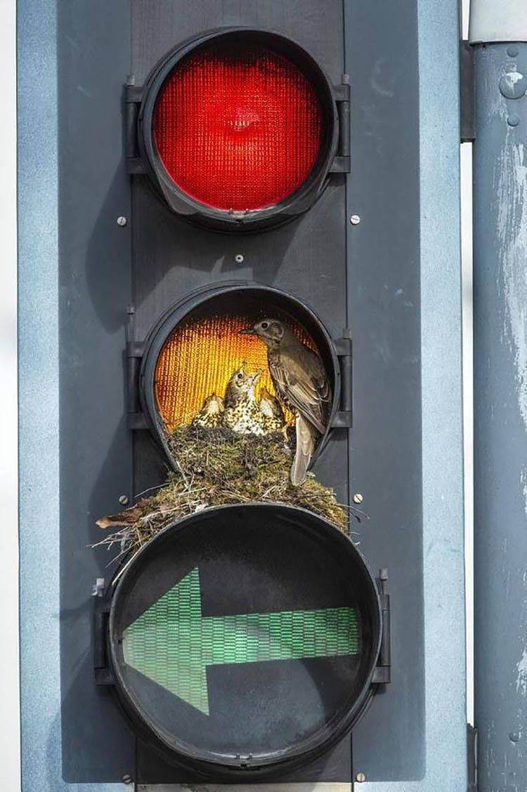 Люди спешат все закатать в асфальт и залить все бетоном, а природа медленно, но уверено засеивает этот асфальт зеленью, как только человек перестанет за ним смотреть на какое-то время. Среди всего этого бетона, асфальта, металла и электричества бывает удивительно встретить представителей дикой природы. А они сюда заглядывают, а некоторые и вовсе не могут не заглядывать, как например, птицы. А ещё птицам обязательно нужно вить гнезда, чтобы выводить потомство, да и от непогоды прятаться. И людей удивляет и то, как тщательно их гнёзда устроены и как органично они сделаны, и то, в каких местах они иногда расположены.