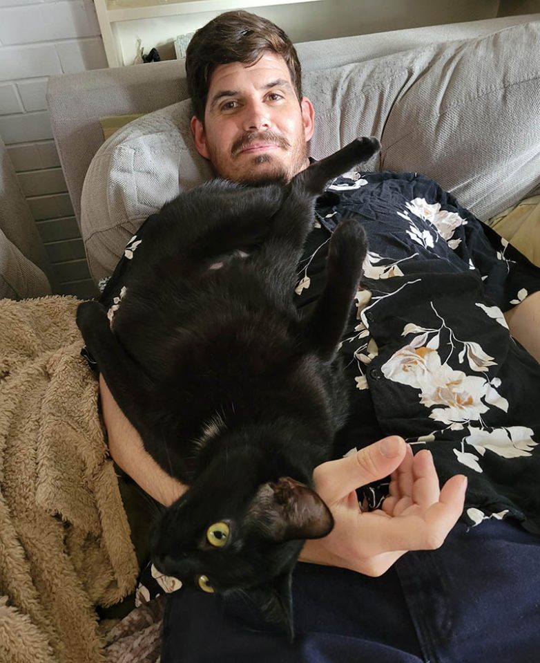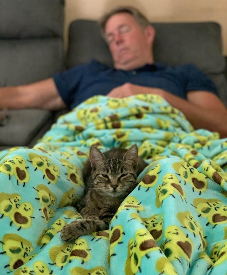 11. “Он до сих пор продолжает уверять всех вокруг, что не пытает к нашему коту никаких чувств. И при этом каждое утро угощает его каким-нибудь лакомством и в обязательном порядке валяется с ним на диване.”