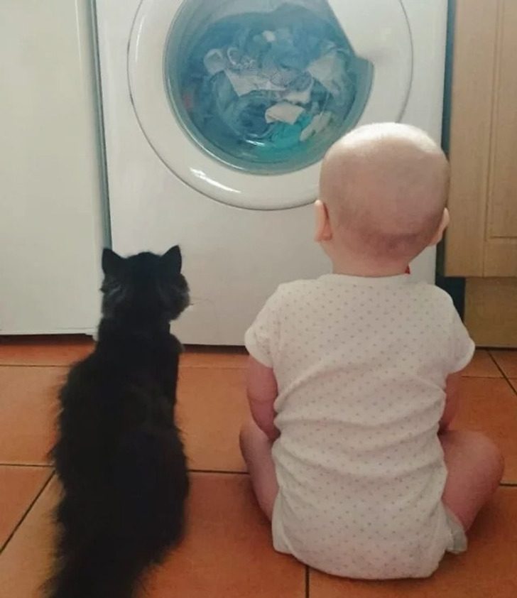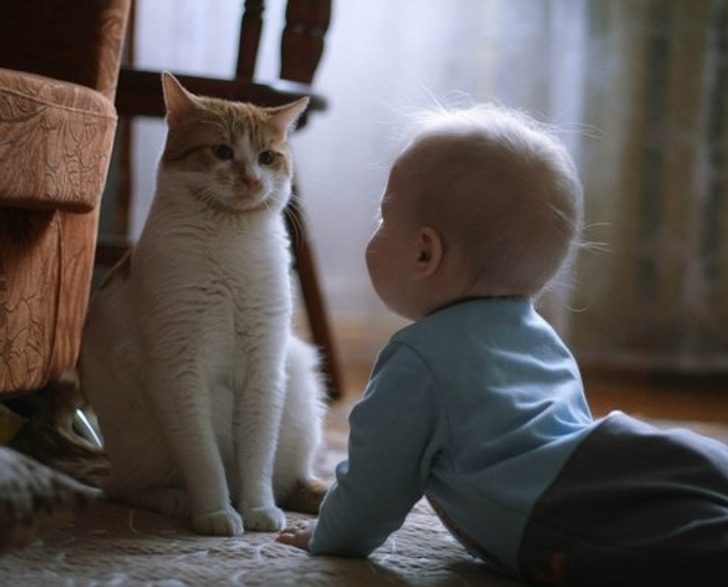 «Первая встреча кота и ребенка. Наверное, лучшее фото моего кота»