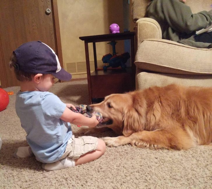 «Пес мог легко отобрать свою игрушку. Вместо этого он просто лежал, с улыбкой дергая за веревку, пока мой сын визжал от радости»