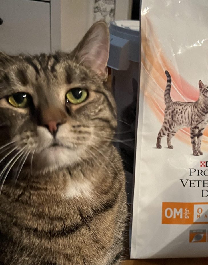 «Мой кот только что перешел на новый, диетический корм. Выражение его мордочки лучше тысячи слов»