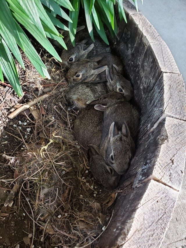 Крольчата, найденные в цветочном горшке
