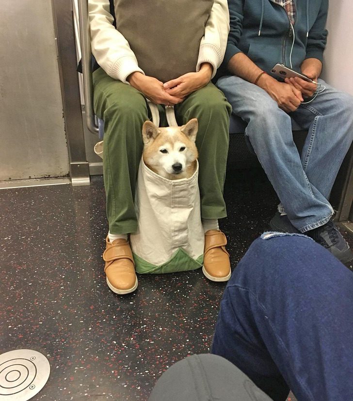 Я видела этого парня несколько лет назад в метро с той же сумкой и той же собачкой. Рада, что они продолжают так ездить.