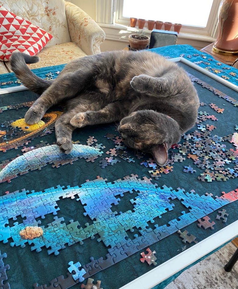 1. “После того, как наша кошечка решила нам помочь, сборка пазла пошла гораздо быстрее”