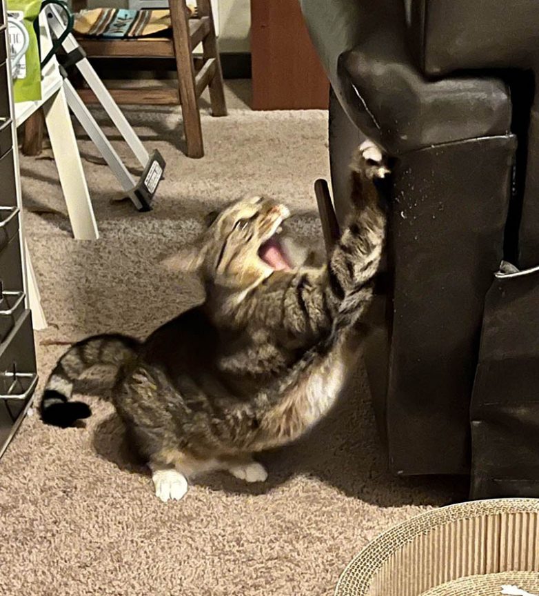 6. “Моя кошка прекрасно знает, что царапать диван нельзя. Но это приносит ей такое удовольствие, что она просто не может устоять перед искушением.”