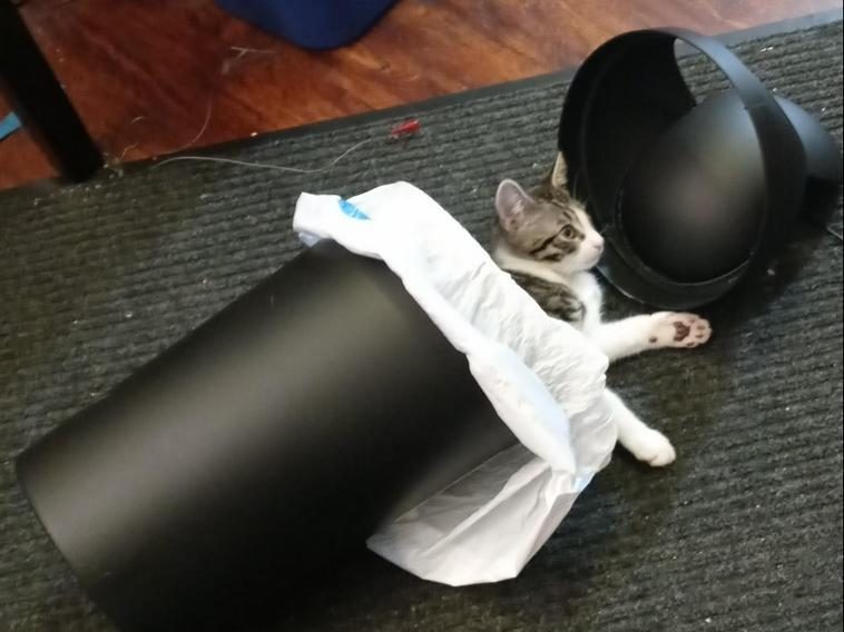 12. “По мнению нашего кота, мусорное ведро — самое уютное место в доме”