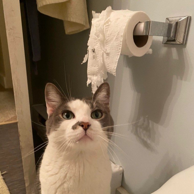 3. “Мало того, что кот любит спать в раковине, так он еще регулярно уничтожает бумажные полотенца!”