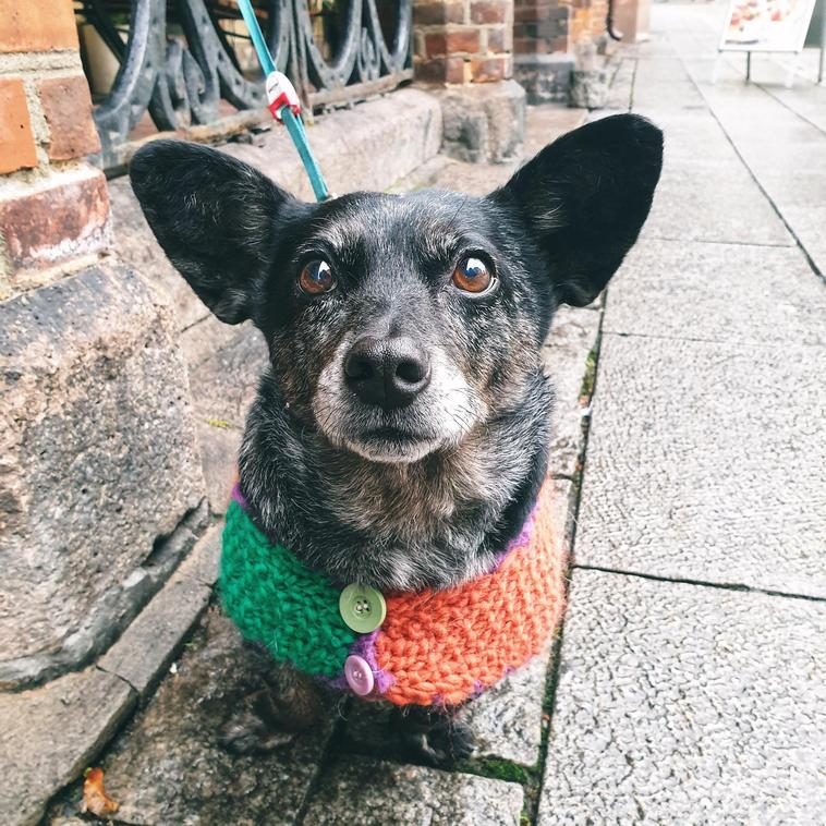 11. “10 лет — не так уж и много для собаки. Поэтому мы решили взять эту девочку к себе. На фото она в свитере, который ей связала моя мама”