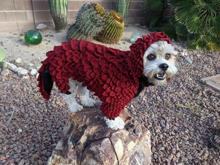 3. “Оригинальный вязаный комбинезон, имитирующий чешую, в котором моя собака превращается в симпатичного дракончика”