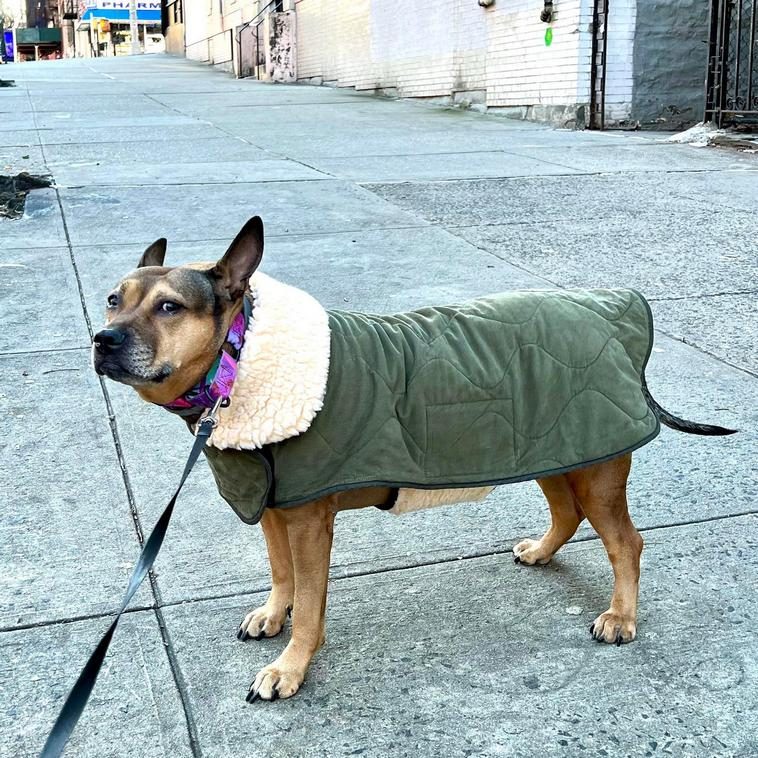 11. “Из своей старой куртки сшила стильный пуховичок для своей собаки, но она все равно не в восторге от прогулок в холодную погоду”